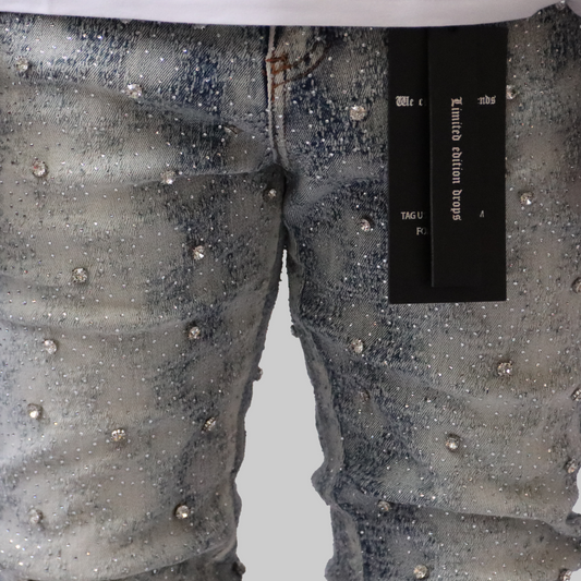 Sold outAqua Blue Embellished Stacked Denim